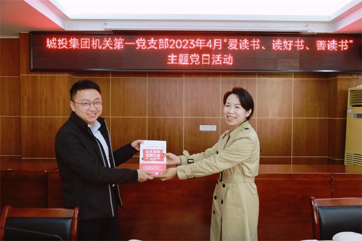 為深化學(xué)習(xí)型黨支部建設(shè),引導(dǎo)廣大黨員干部養(yǎng)成多讀書,讀好書,好讀書的良好習(xí)慣,4月25日,城投集團機關(guān)第一黨支部開展2023年4月“愛讀書、讀好書、善讀書”主題黨日活動,支部書記湯彩燕主持活動并講話。支部黨員、入黨發(fā)展對象、入黨申請人參加活動。